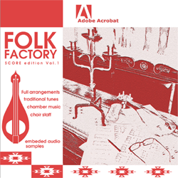 The Acrobat book contains 25 versatile scores which are fully navigated by bookmarks content. The bookmarks content is divided into chapters, a.g: Arrangements, Choir, Traditional tunes etc.